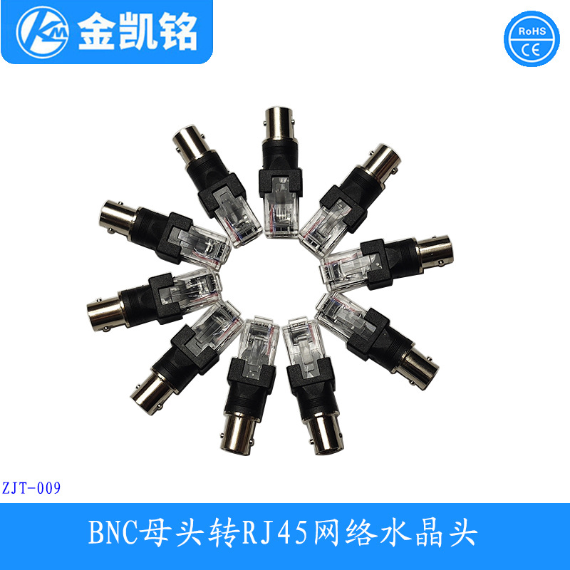 黒色bncアダプタ監視bncヘッドBNC-RJ45ネットワーク水晶ヘッドケーブルアダプタZJT-009