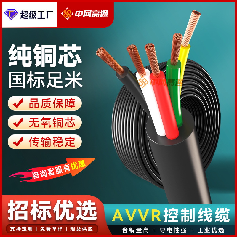卸売り国標ケーブルRVV2 3 4 40芯カバーケーブル0.5-10平方難燃純銅電源コード