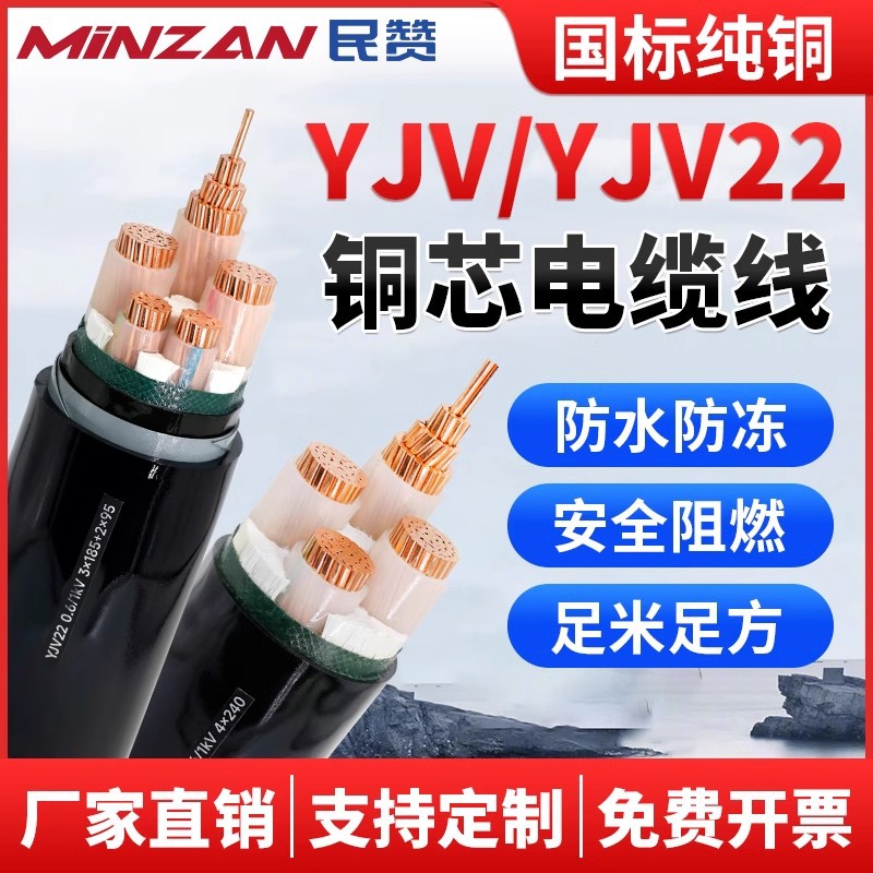 YJVケーブル線国標銅芯2.5 4 6 10平方2/3/4芯三相四電線充電杭屋外