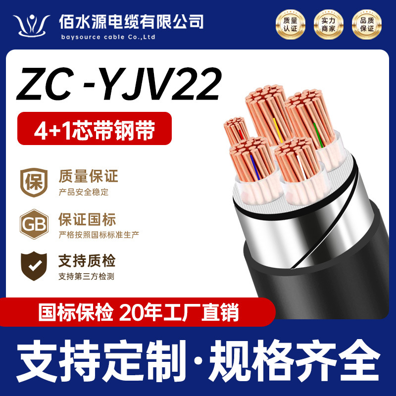 ZC-YJV22 国家標準銅芯外装ケーブル 4+1 芯 0.6-1KV 無酸素銅難燃性ユニバーサル外装エンジニアリング