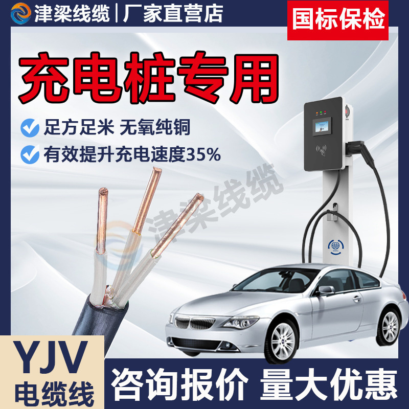 起帆ケーブル線難燃yjv3/4/5芯/10平方両芯充電杭純銅芯国標硬電源コード
