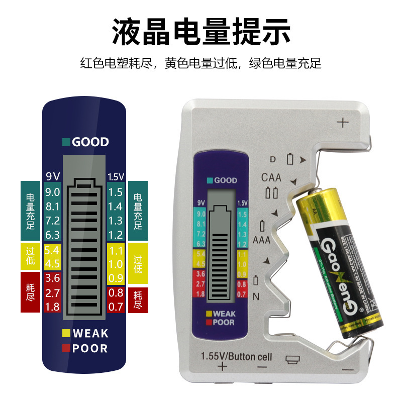 デジタル電池検出計5番7番ボタン電池9V電池電圧測定器電池テスター