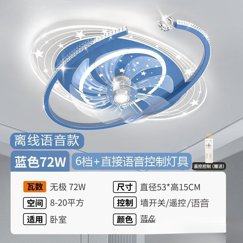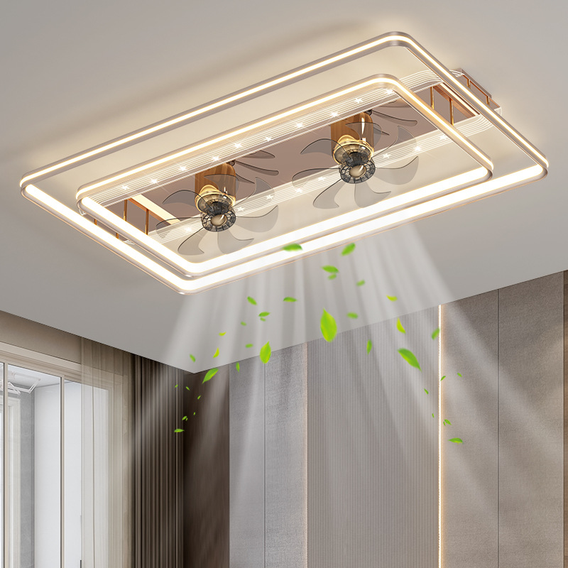 ステルス静音ファンライトシンプルで現代的な天井レストラン一体吊り扇ライトリビングルームの寝室のスマートファンライト