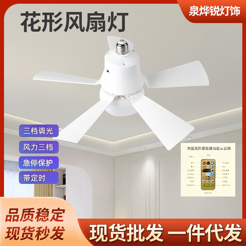 クロスボーダー新しい家庭用ファンライト E27 取り外し可能なファンリーフランプレストラン寝室リモコン商業照明シーリングファンライトワイド電圧