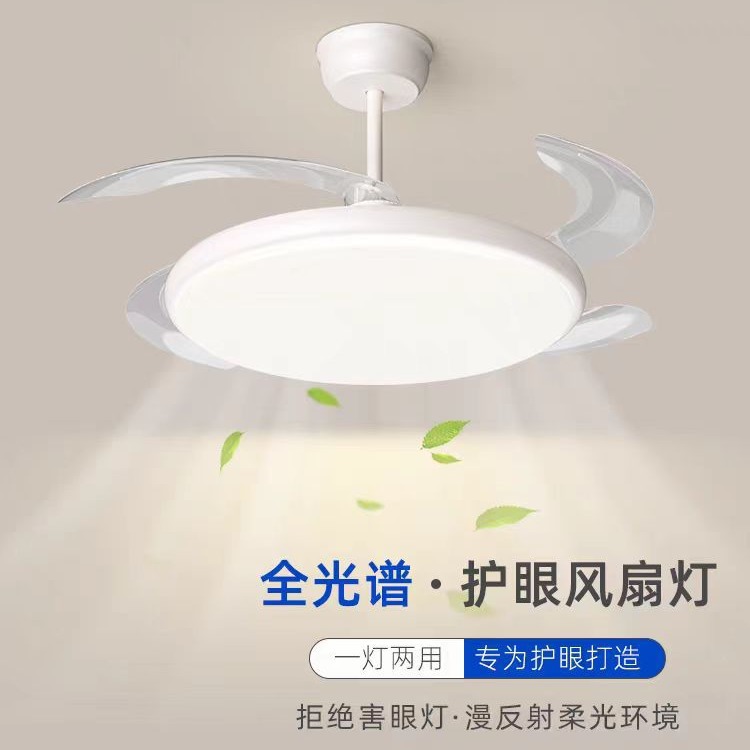 ファンライトレストランシャンデリア目の保護フルスペクトル2024新しいシンプルな寝室目に見えないオールインワン電動風吊りファンライト
