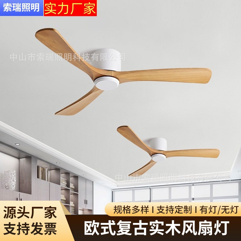クロスボーダー無垢材ファンランプ周波数変換ログテクスチャシーリングファン大型アメリカンレトロシーリングファンランプ工場卸売