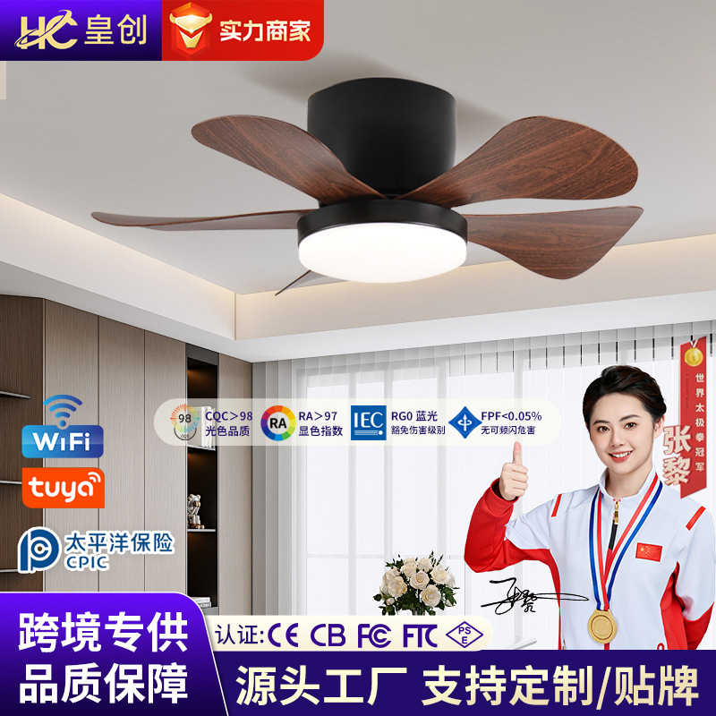 国境を越えた新型E27ねじ口家庭用静音小型ファンランプ知能吊り扇ランプレストラン寝室ファンランプ