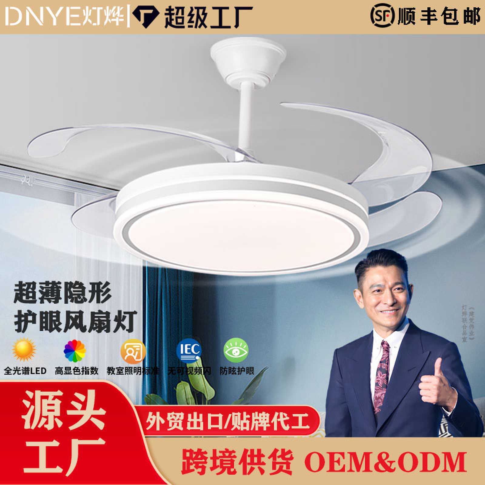 国境を越えた特別な超薄型シーリングファンランプ寝室の天井レストラン目に見えない電動ファンランプミニマリストリビングルーム2024新しいスタイル