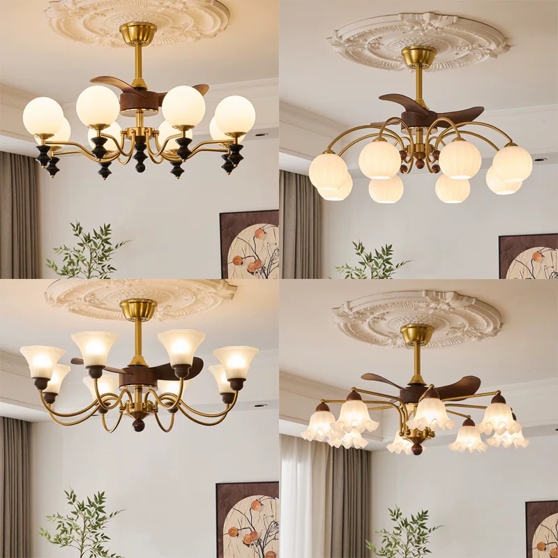 中古レストラン扇風機灯家庭用一体吊り扇風機灯客間寝室食堂ガラス復古華南新型照明器具
