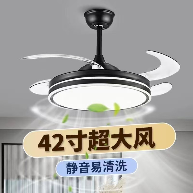 超薄型目に見えないファンランプレストランシーリングファンランプシンプルでモダンなホームリビングルーム寝室インバーター電動ファンシャンデリア