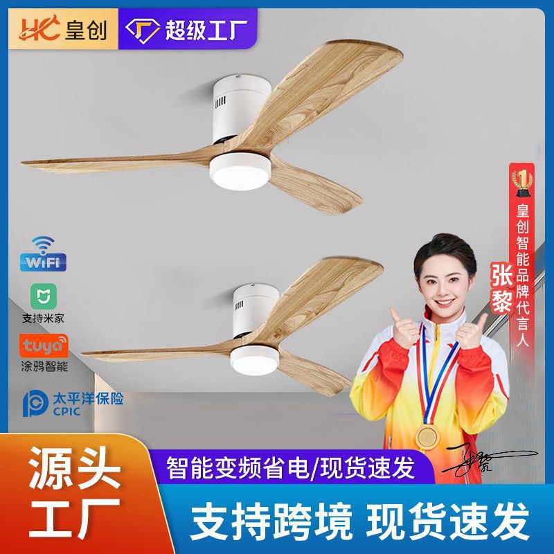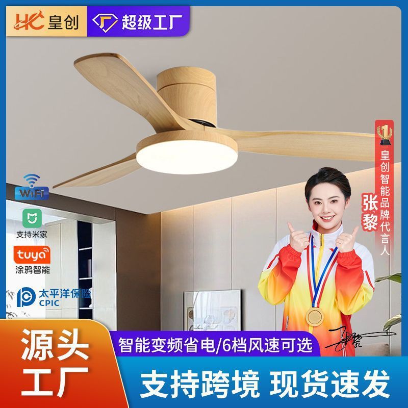 クロスボーダー専用天井ファンランプレストラン実木吊り扇灯スマートリモコン家庭用インバータ扇風機付きシャンデリア