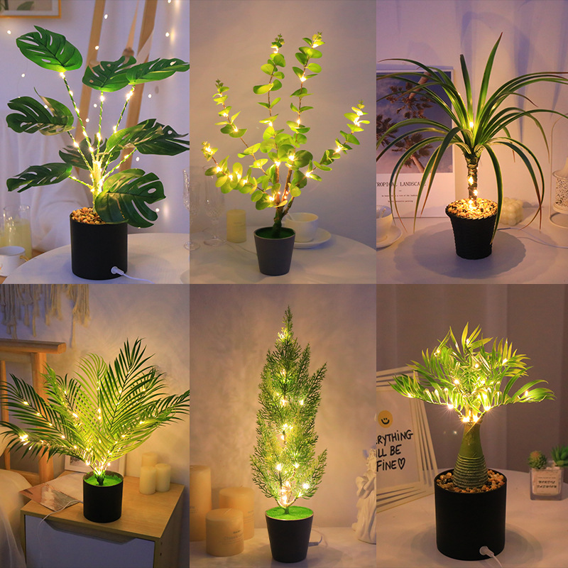 クロスボーダー爆発シミュレーション植物LED小夜灯造形カラーランプ室内デスクトップUSB鉢植え発光装飾カラーランプ