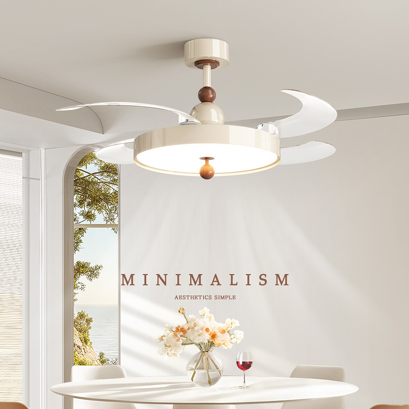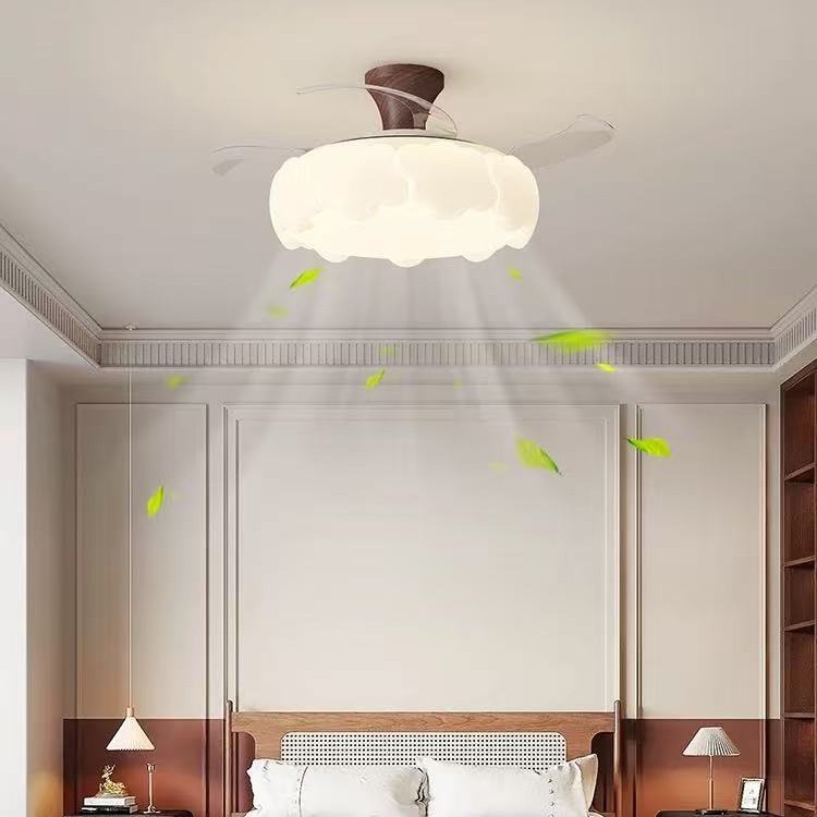 中古クリーム風寝室ファンランプ創意的な雲のリビングレストランのステルスファンランプ知能インバーターファンランプ