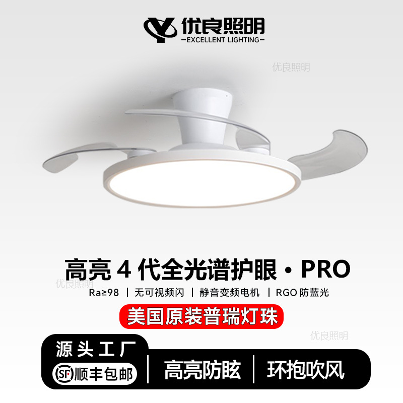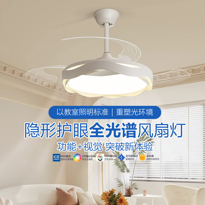 全スペクトルファンランプ客間寝室ランプ現代シンプルな見えない静音レストラン吊り扇ランプ普瑞天井ランプ