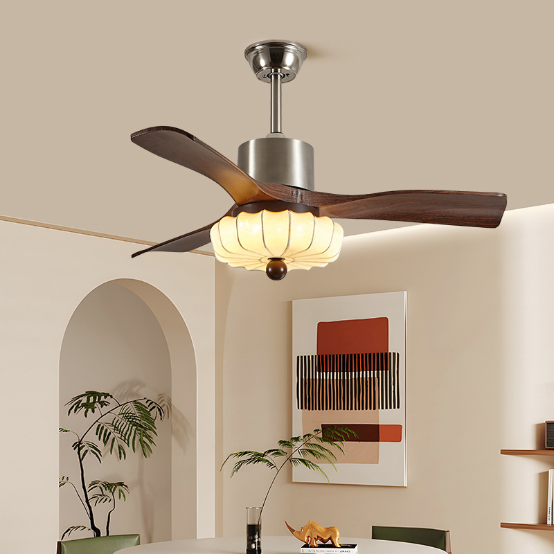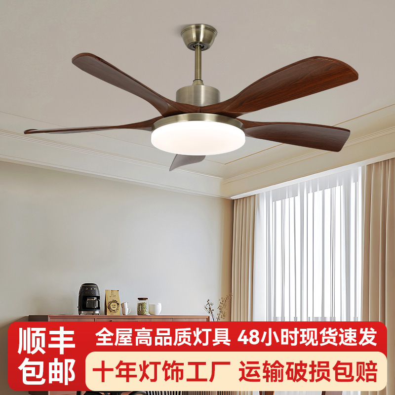 ファンランプ中古風客間吊り扇ランプ胡桃色寝室レストラン一体高級感インバータ天井ファンランプ