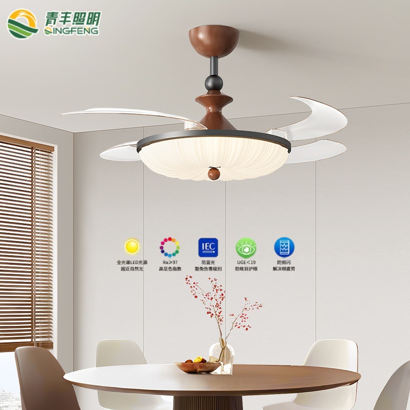 レストランファンランプ2025年新型高級静音客間寝室吊り扇付き高級感中山照明器具
