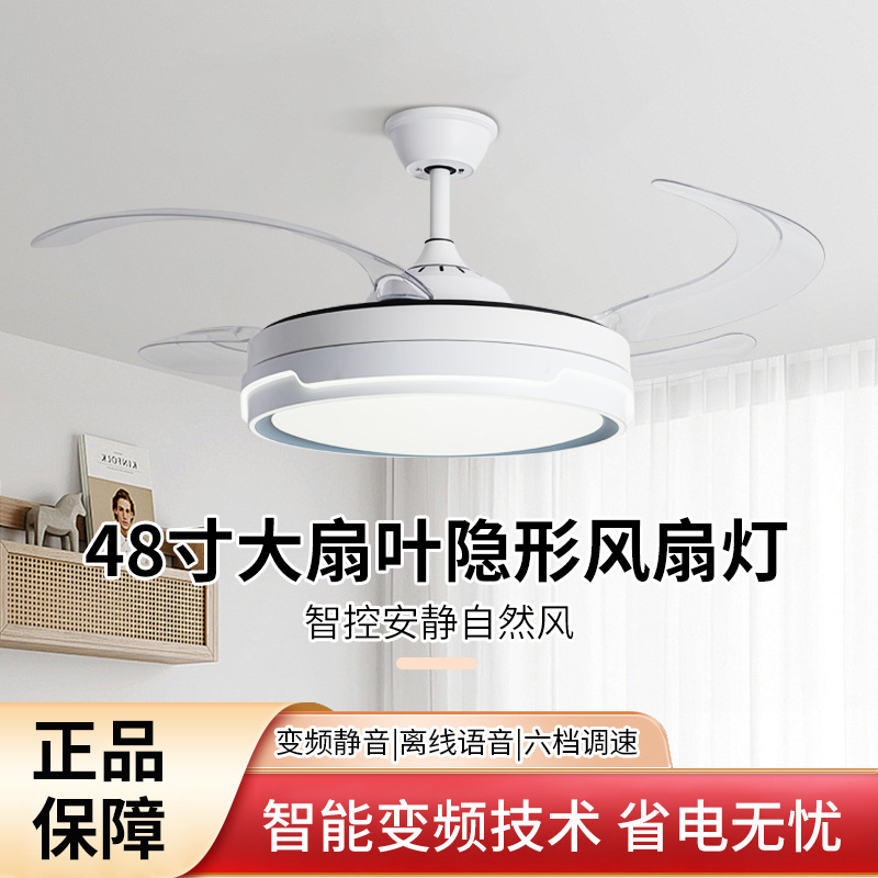 ステルス扇風機ランプ2025新型レストランのシャンデリアの周波数変換静音扇風機のリビングルームの主な寝室の部屋の天井灯