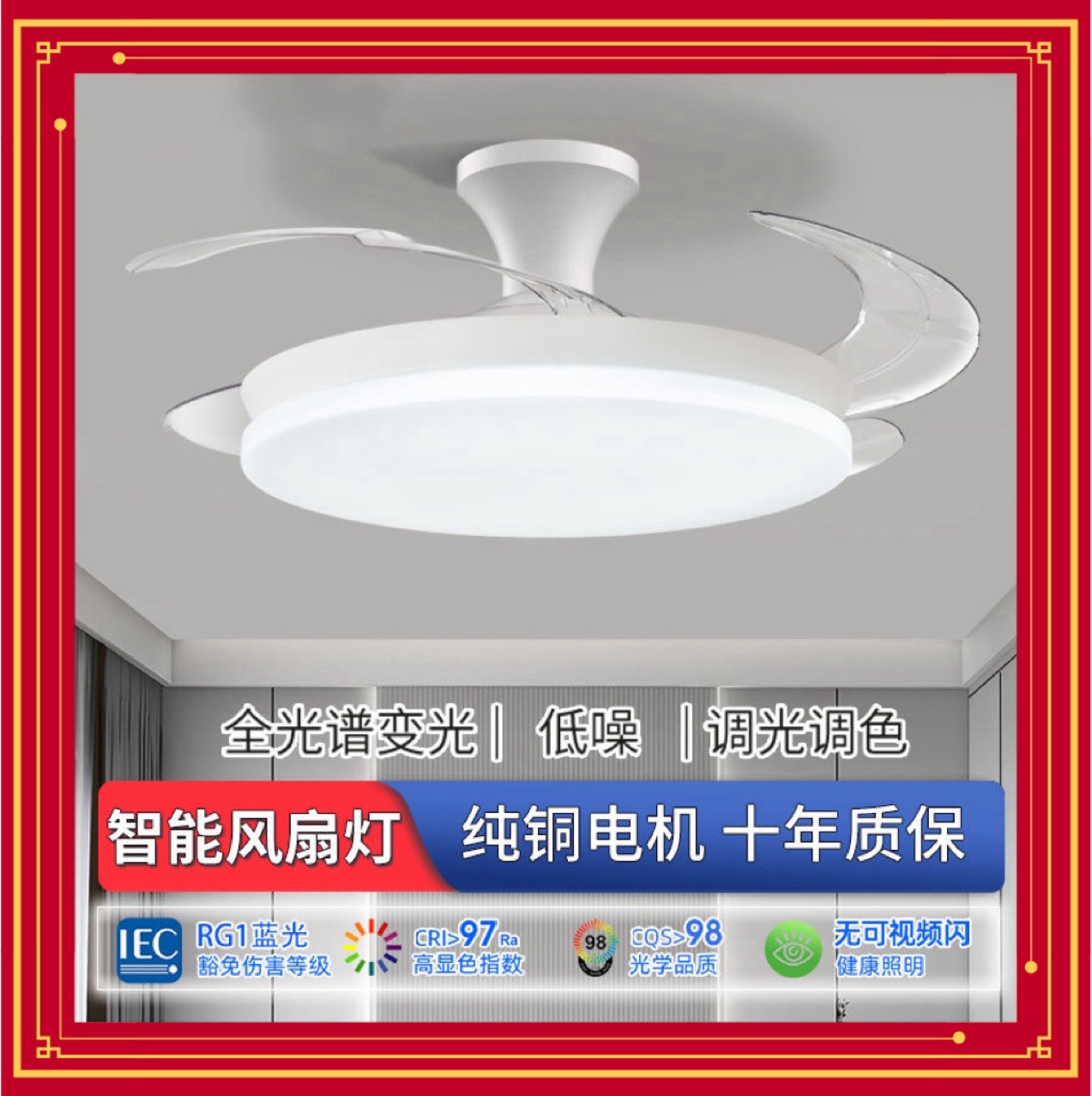 全スペクトルファンランプ客間寝室ランプ現代シンプルな見えない静音レストラン吊り扇ランプ普瑞天井ランプ