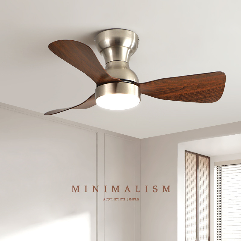 目に見えないレトロなレストランのファンランプ胡桃木目超薄型静音客間扇風機一体灯主寝室吊り扇灯