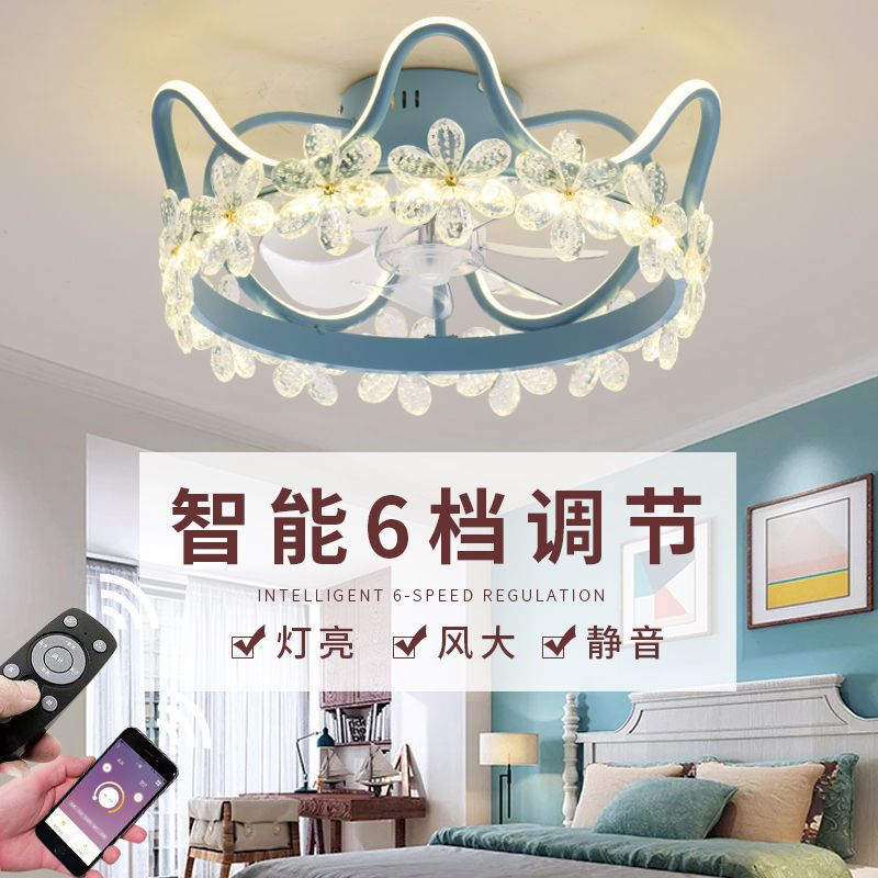 子供部屋ファンライトピンクブルー寝室ライト可変周波数サイレント目の保護天井ファンライト小型シーリングファンライト