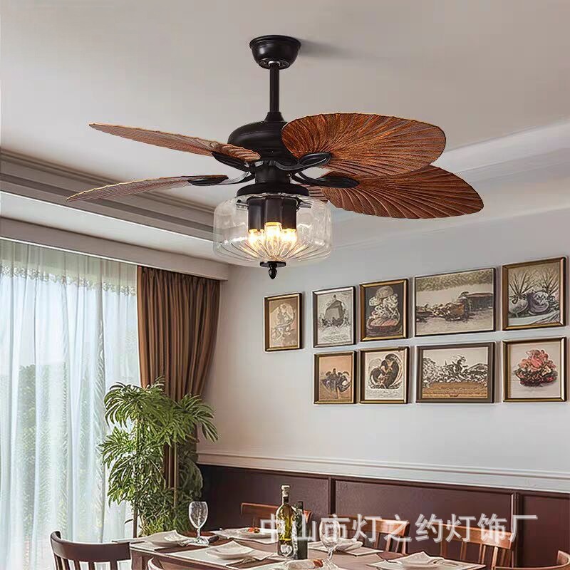 アメリカンカントリーレストランファンランプホームオールインワンシーリングファンランプダイニングルームリビングルームレトロサンルームパビリオンシーリングファンランプ