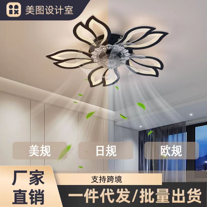 国境を越えた天井ファンランプ北欧のシンプルなリビングレストランの寝室の天井ファンランプのスマートファンランプの新製品