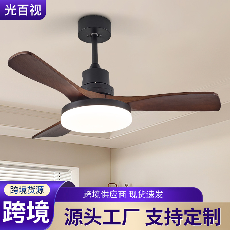 ファンランプ中古風客間吊り扇ランプ胡桃色寝室レストラン一体高級感インバータ天井ファンランプ