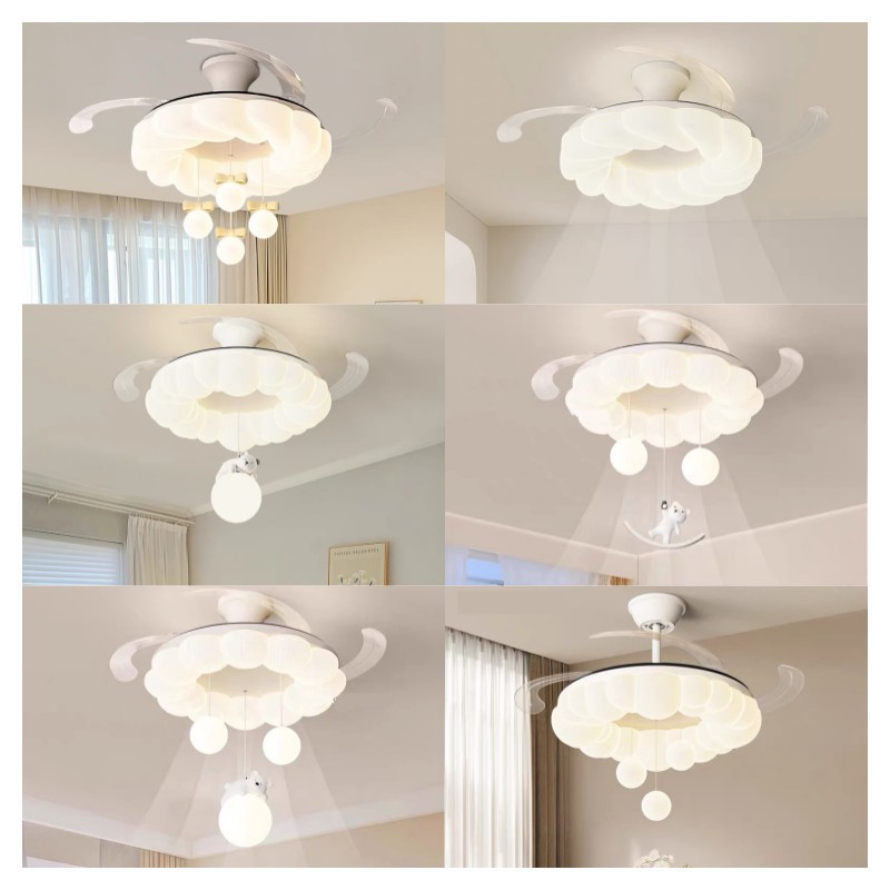 中古クリーム風寝室ファンランプ創意的な雲のリビングレストランのステルスファンランプ知能インバーターファンランプ