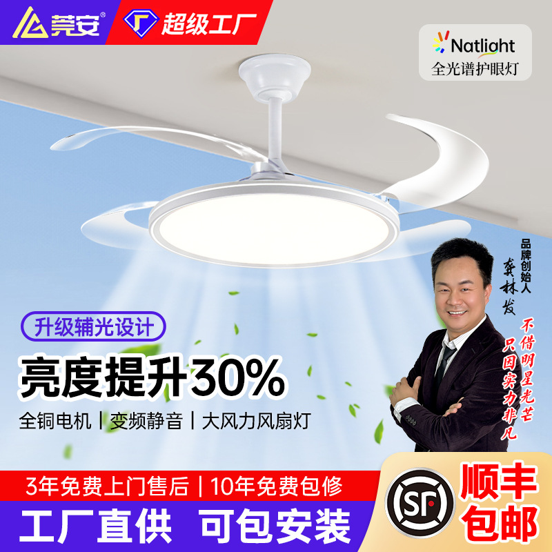 ブレードレスファンライト 2024 新型目に見えないリビングルーム寝室マスターベッドルームシーリングライト中山照明全館スマート音声