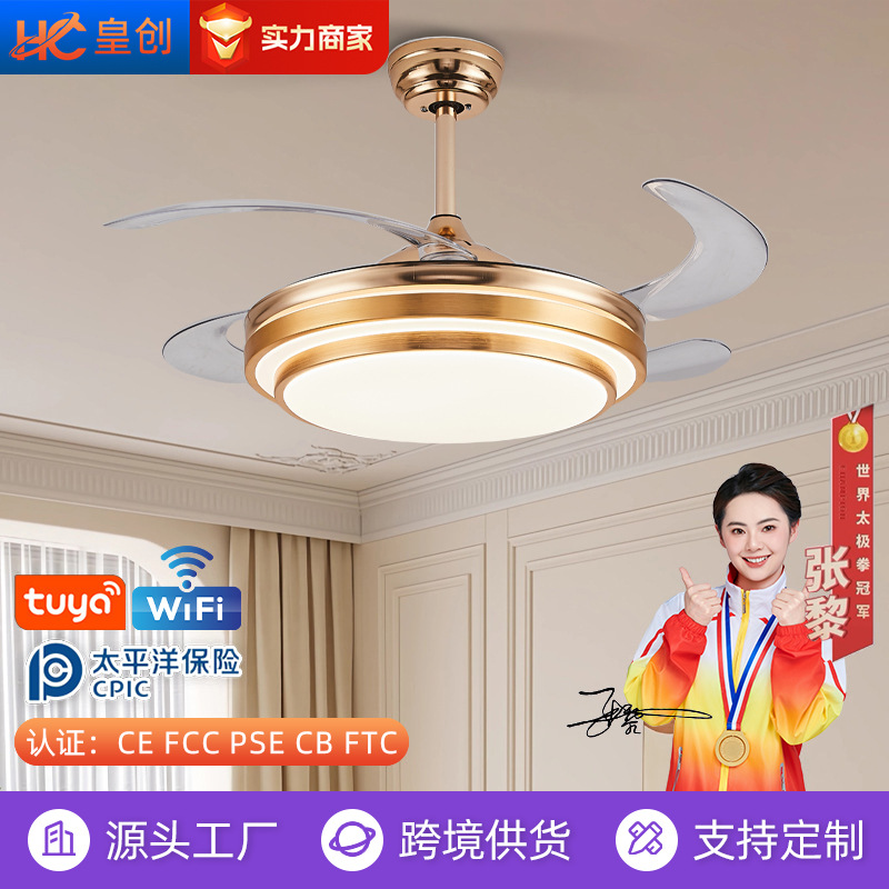 2025年新モデルのスマート音声ブレードレスファンランプ、リビングルームとベッドルームランプ、モダンでシンプルな中山ランプの国境を越えた特別供給