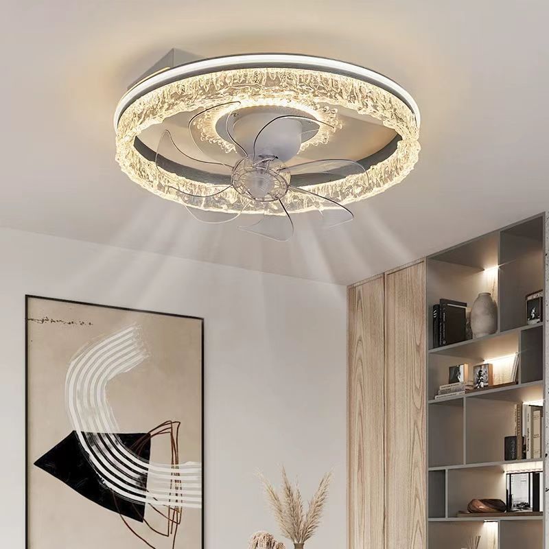 2024新型軽豪華水晶ファンランプ寝室天井灯ファン付きシンプルな現代家庭用部屋ファンランプ