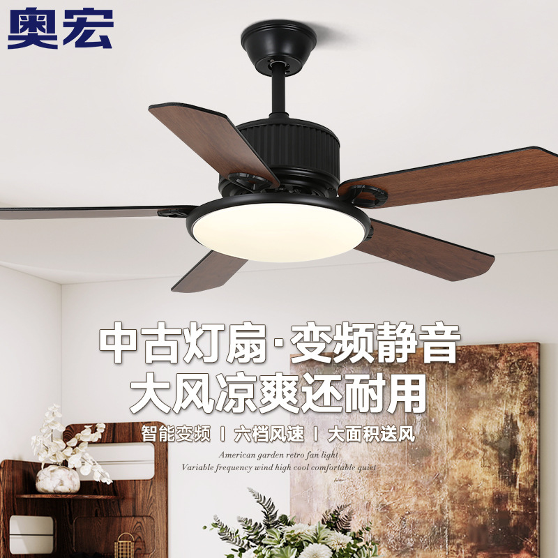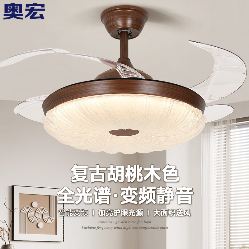 奥宏中古ファンランプレストラン寝室レトロな胡桃色のステルス扇風機52インチリビングルームの目の天井ランプ