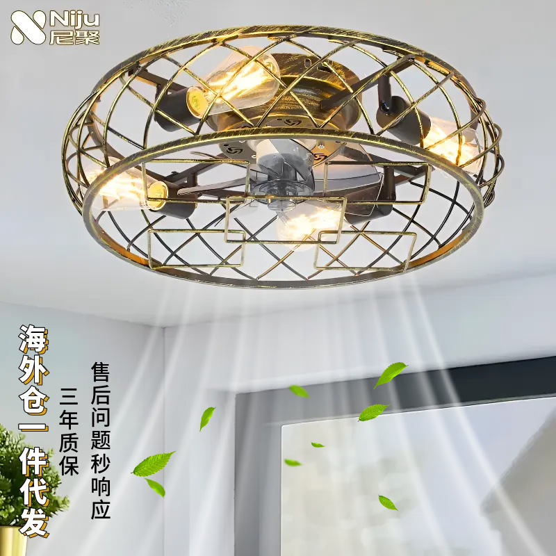 アメリカンレトロファンランプリビングルームとダイニングルームアンティークスタイルシーリングファンランプ可変周波数強風サイレントファンランプ中山ランプ