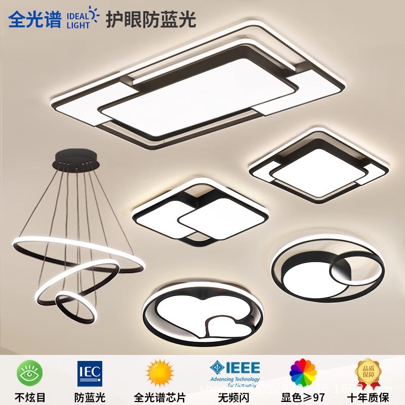 雰囲気のあるリビングルームのメインライト、レストランのベッドルームライト、モダンでシンプルなLED北欧シーリングライト、家全体のパッケージ照明器具の組み合わせ