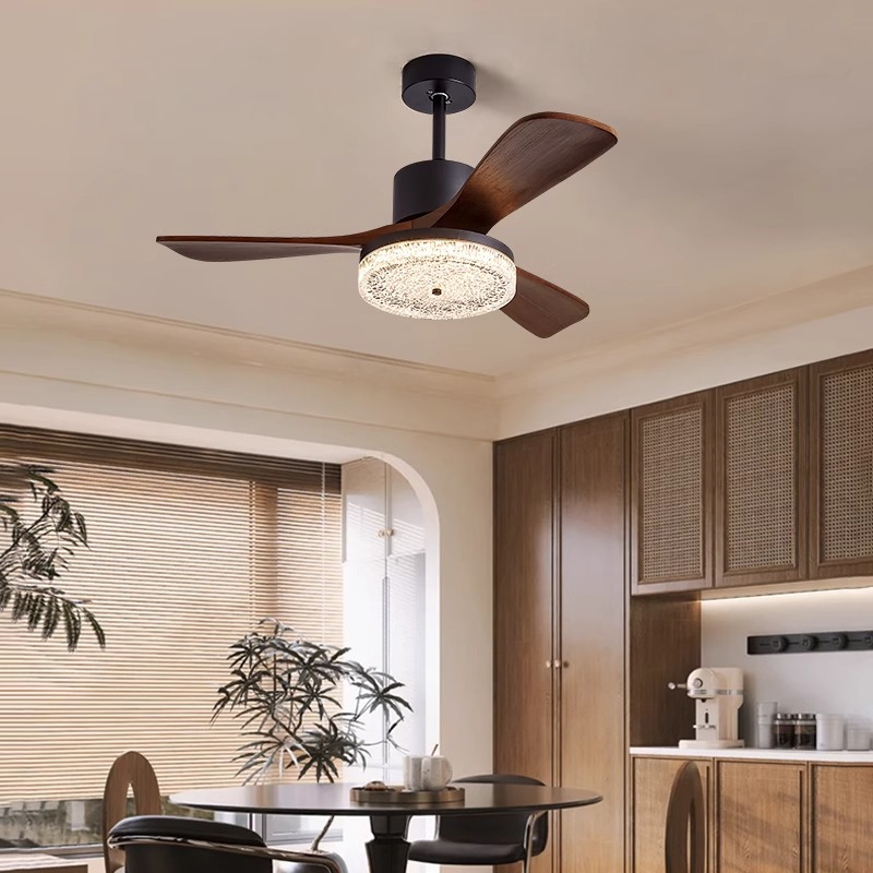 ファンライトアンティークリビングルームサイレントシーリングファンライトバウハウスウォールナットカラーレストランベッドルームファン一体型ライト付き