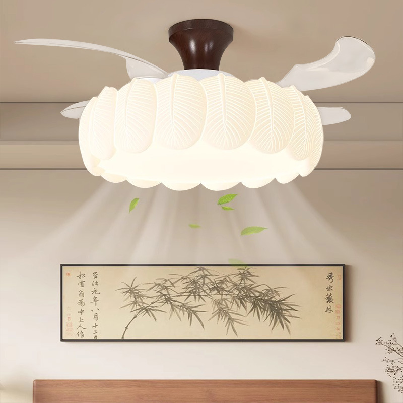 ファンライトクリームスタイルレストラン寝室スマートホーム目に見えないシーリングファンライトアンティークスタイルフレンチフルスペクトルリーフライト