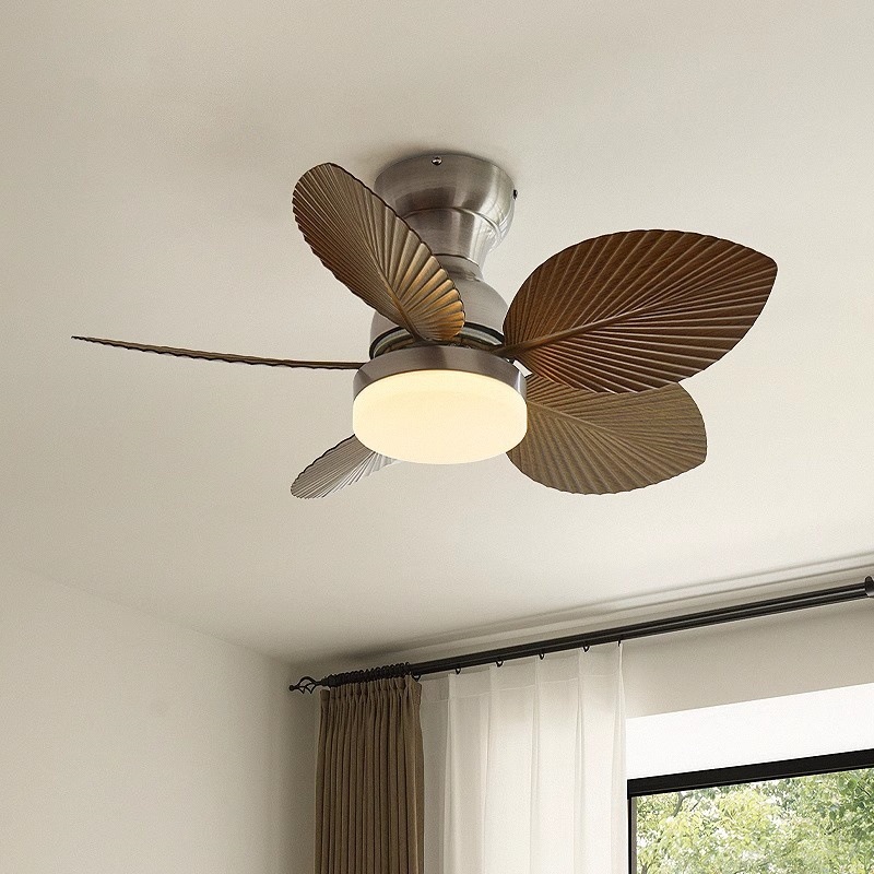 フレンチクリームスタイルレトロシーリングファンランプカフェ小型扇風機ランプホームレストラン寝室書斎ファンランプストレートリーフ