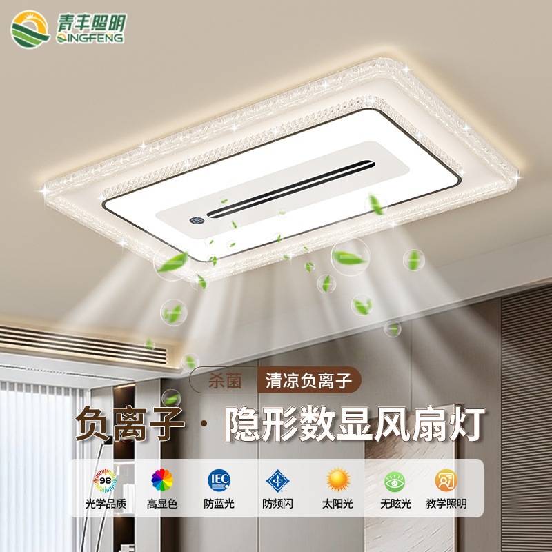 マイナスイオンブレードレスファンランプ 2025 新しいリビングルームのシーリングランプ寝室のサイレントモダンなシンプルなファンランプ
