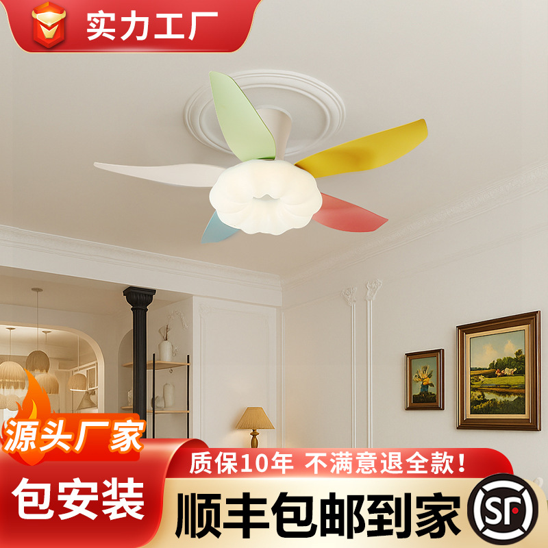 天井に見えないファンライトサイレントクリームスタイルレストランマスターベッドルームライト子供部屋目の保護シーリングファンライト2025新しいスタイル