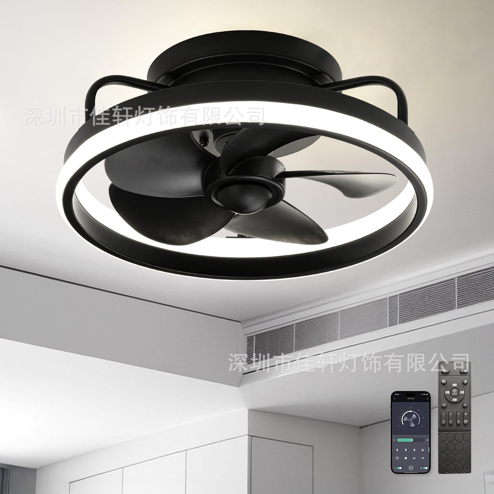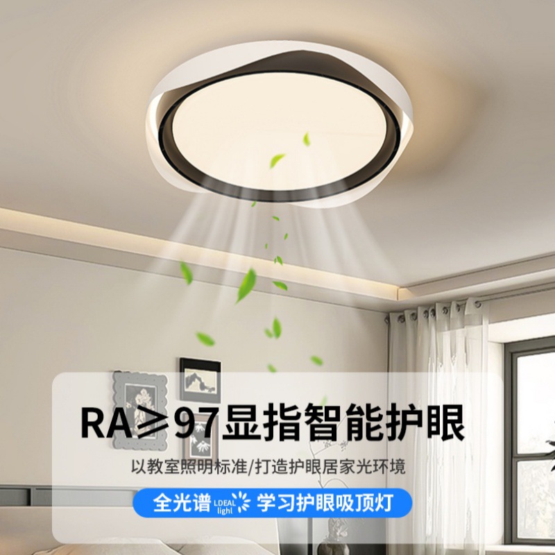 2025 新しい目に見えないファンランプモダンなシンプルなラウンド LED ルームランプフルスペクトル目の保護寝室のシーリングランプ