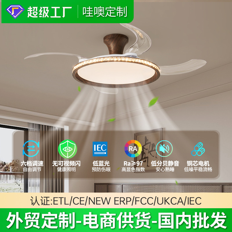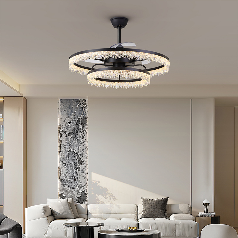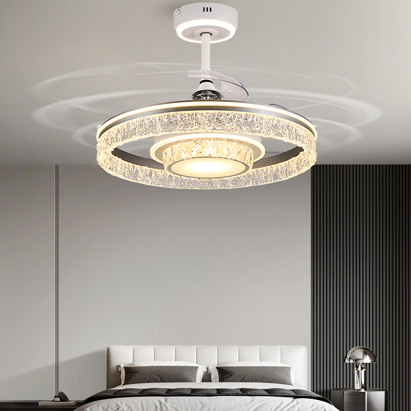 アイスクラックルシーリングファンライト目に見えないファンライト2025新しいライト高級シャンデリア寝室レストランホームオールインワンファンライト