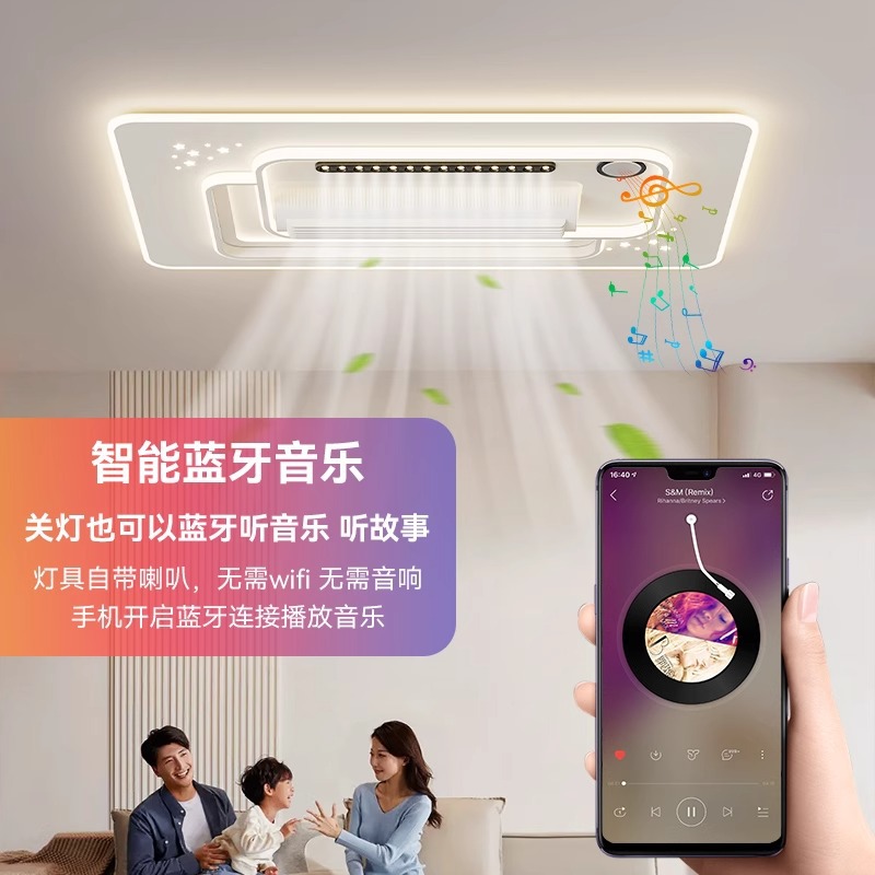 リビングルームブレードレスファンランプモダンシンプル2025新しいレストランファンランプBluetoothオーディオ天井照明パッケージ