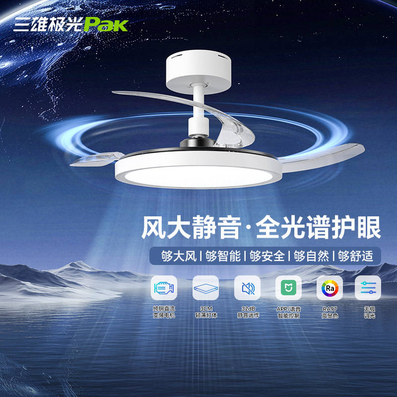 Sanxiong オーロラフルスペクトル目の保護アンチグレアファンランプハイエンドホームスマートレストラン寝室目に見えないシーリングファンランプ