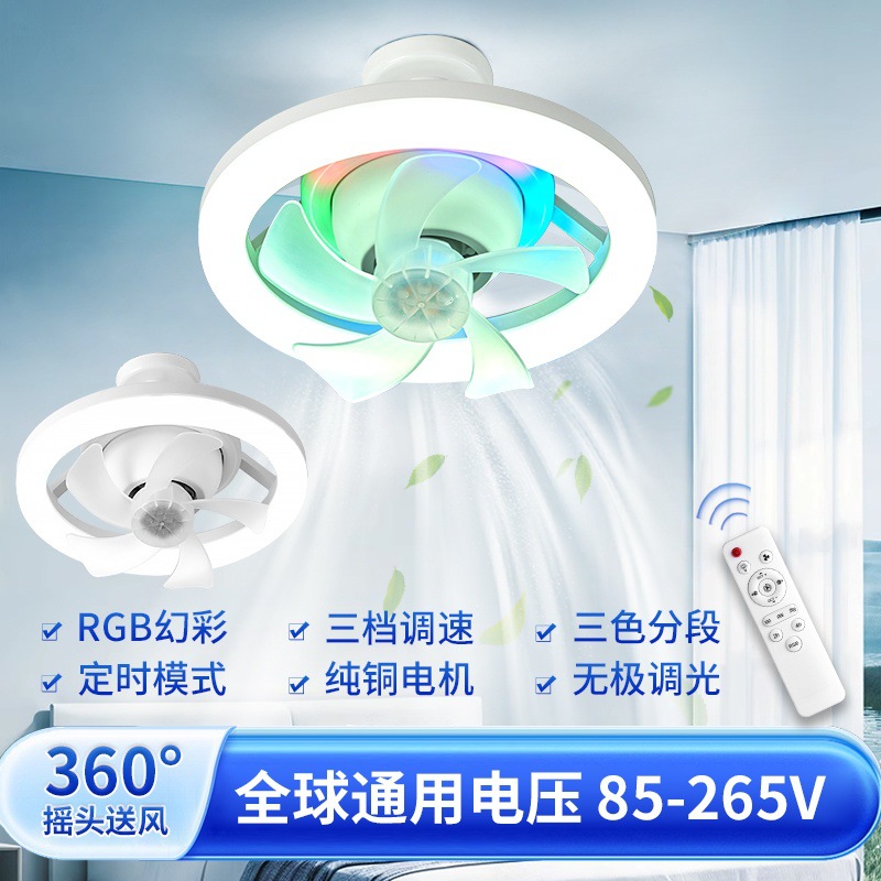 国境を越えた新型E27ねじ口家庭用静音小型ファンランプ知能吊り扇ランプレストラン寝室ファンランプ