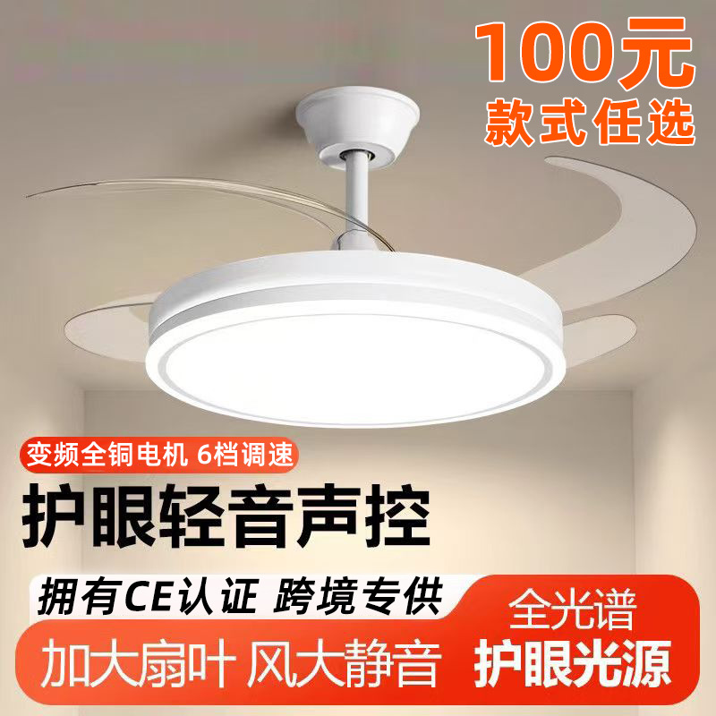 クロスボーダー多機能北欧シーリングファンライト可変周波数寝室レストランリビングルームファンライトワイド電圧シーリングファンライト付き