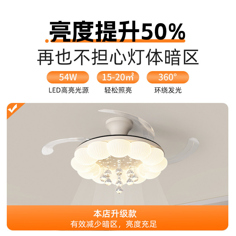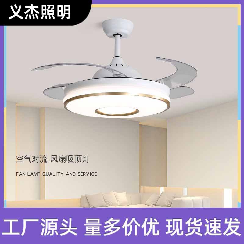 新しいライト高級リビングルームファンシーリングランプ目に見えないホームオールインワンベッドルームモダンシンプルなレストランシーリングファンシャンデリア
