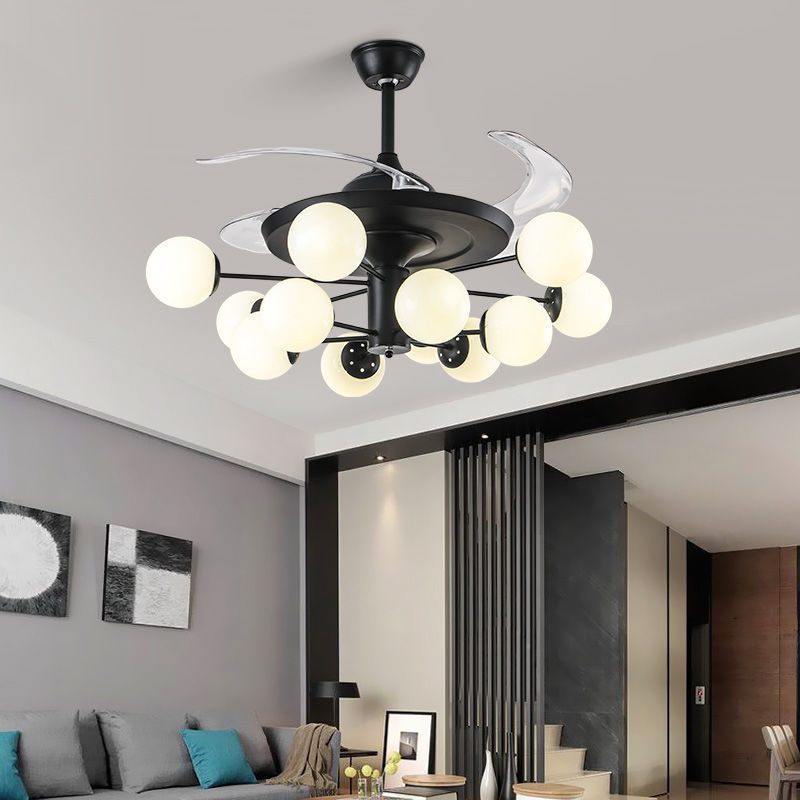 北欧マジックビーン分子目に見えないファンランプリビングルームランプシンプルモダンレストランホームライト高級オールインワンシーリングファンランプ