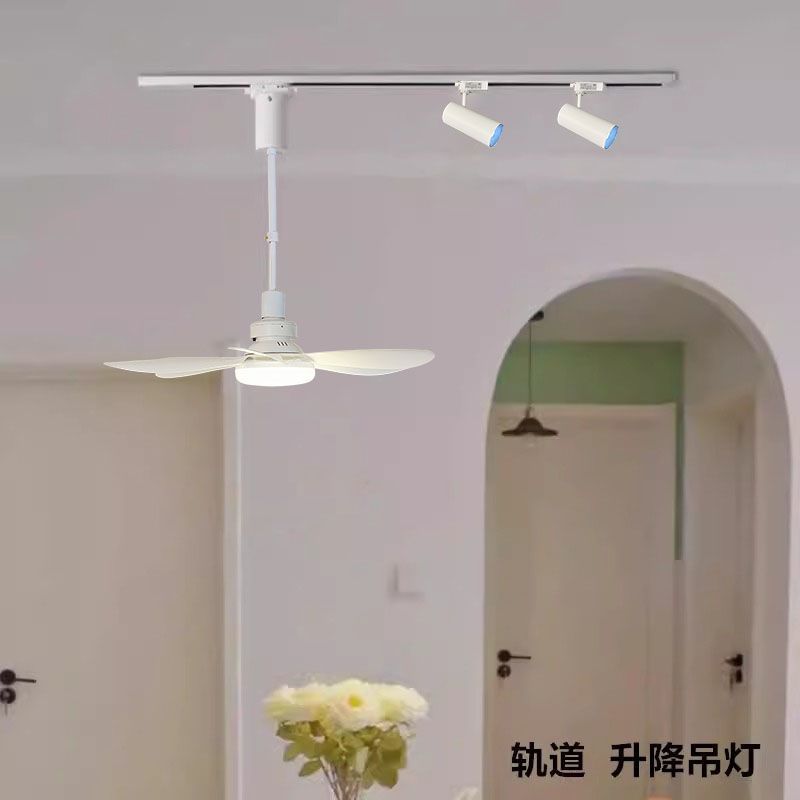 モダンでシンプルなレストランホームレールリフティングレストランファンスポットライトバーテーブル周波数変換インテリジェントリモコンシャンデリア
