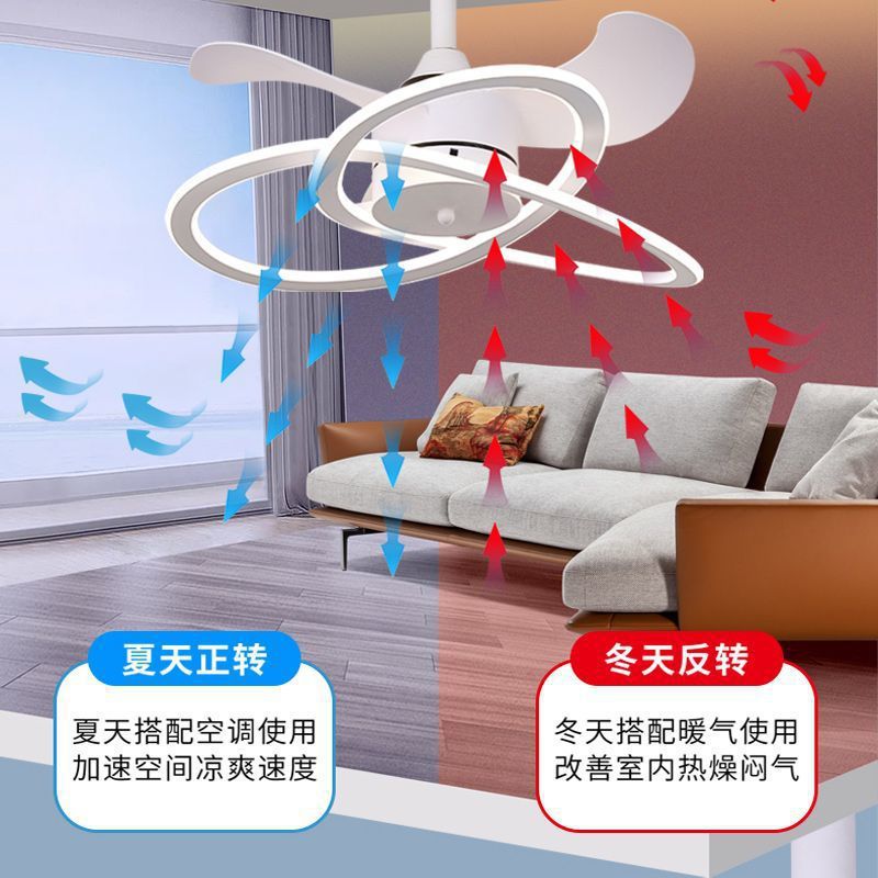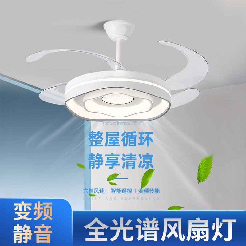 レストラン、リビングルーム、寝室用のクロスボーダーインビジブルファンライト、ファンライト、スマート周波数変換オールインワンファン付きシーリングファンライト
