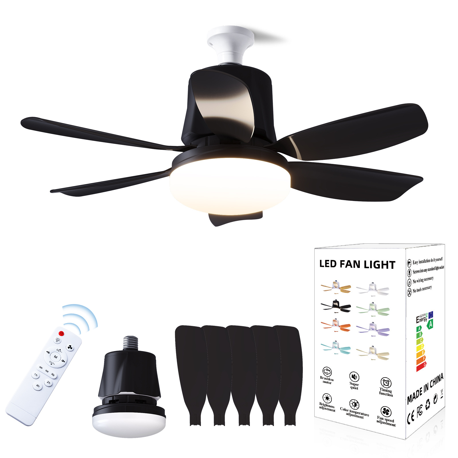 E27ねじ口水晶七葉ファンランプ室内無調光安全静音省エネLEDリモコン扇風機電球